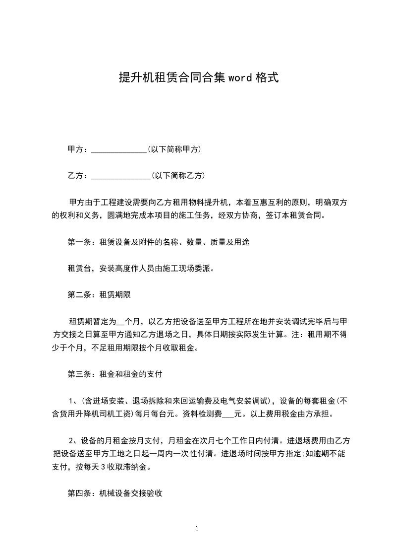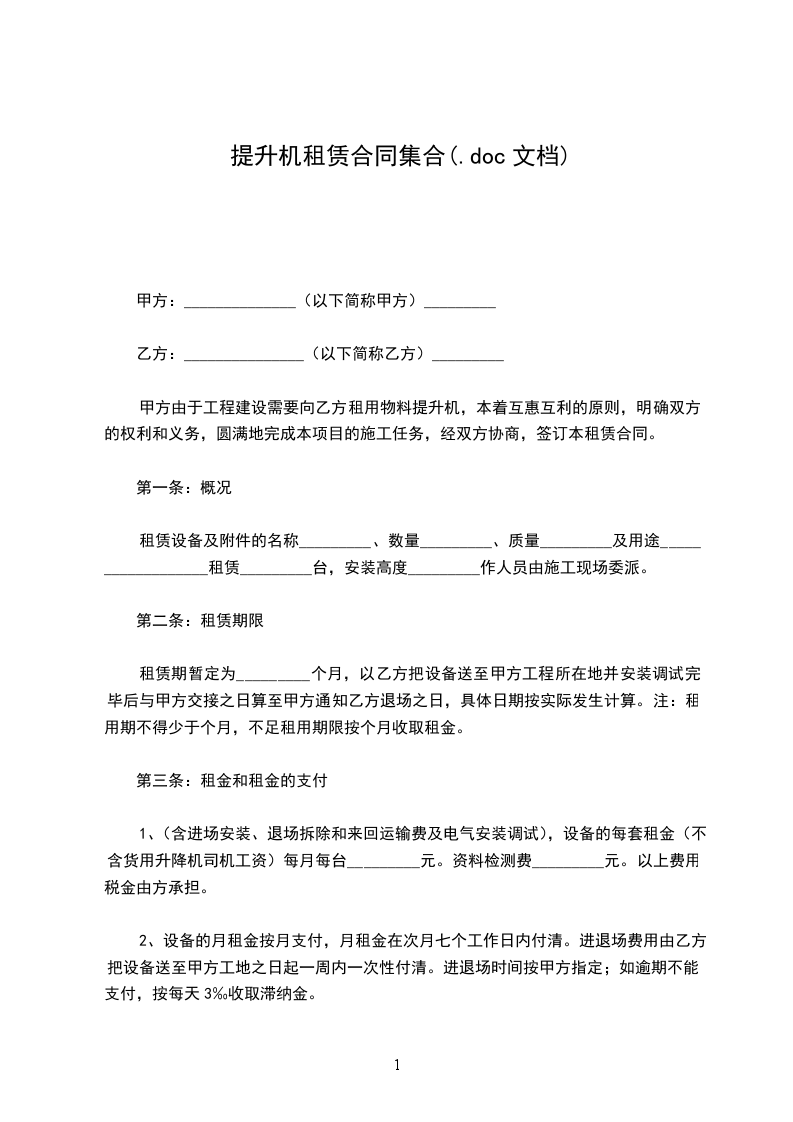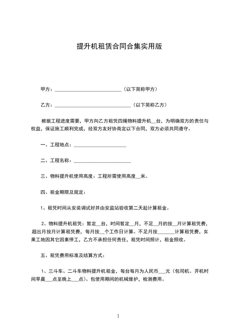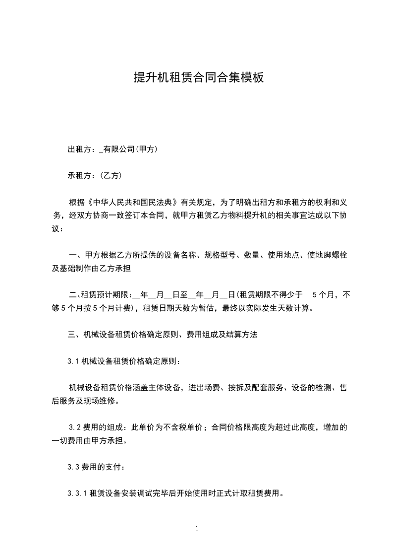 根据《中华人民共和国民法典》及有关法规,按照平等互利诚信的原则,为明确合同各方的权利和义务,签订本合同。备注:每台(套)配备提升机台,屋面悬挂机构(可伸缩、