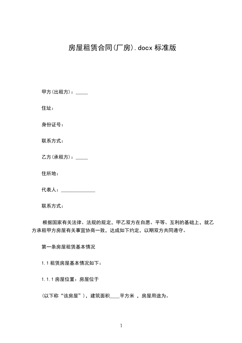 第一条房屋租赁基本情况
