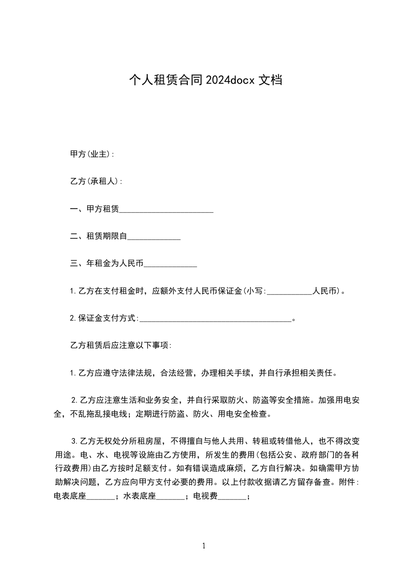 一、甲方租赁_______________________