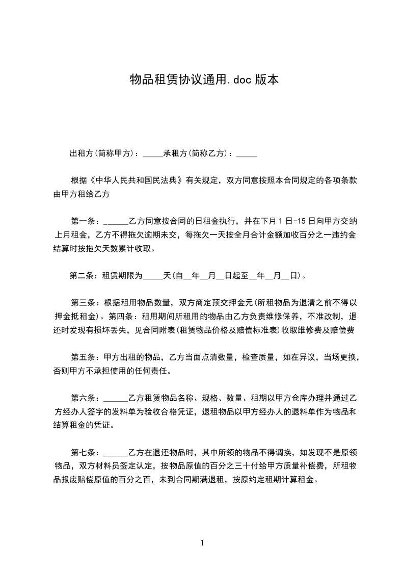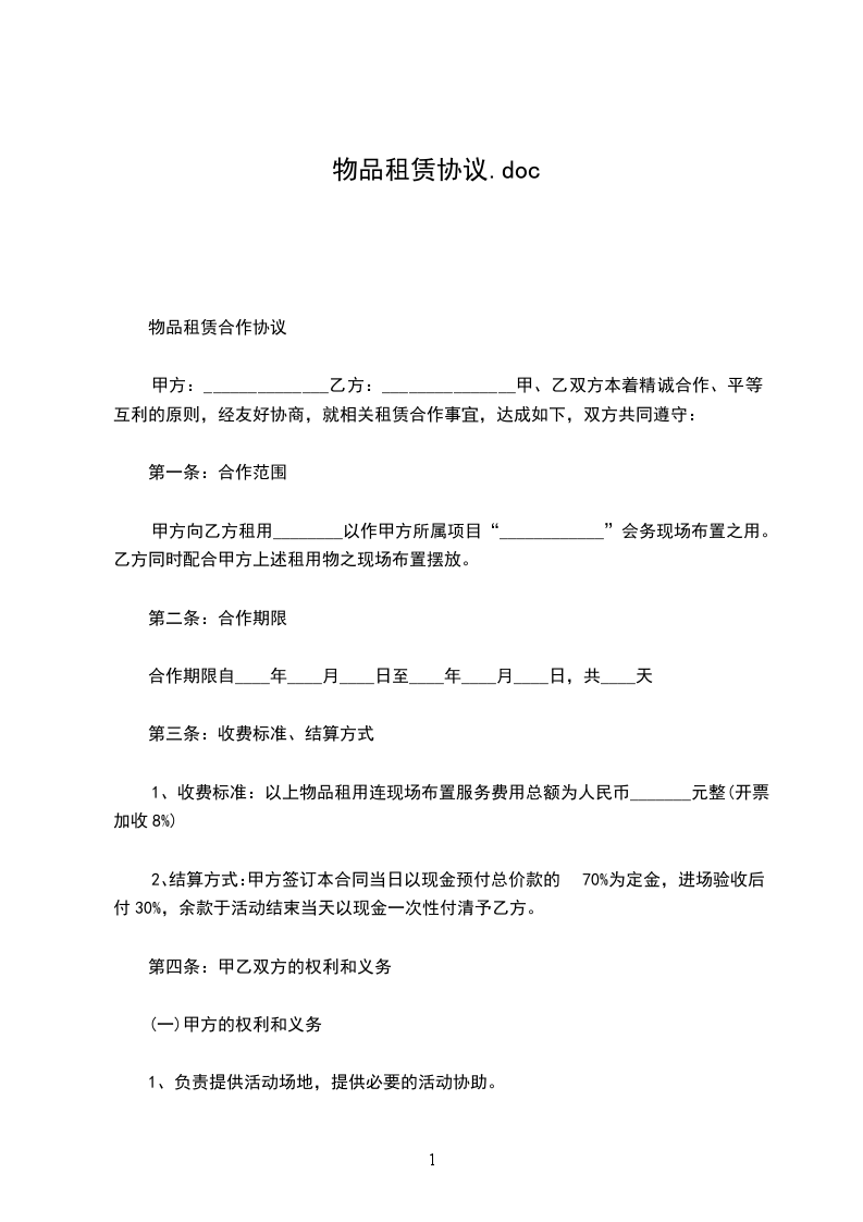 物品租赁合作协议