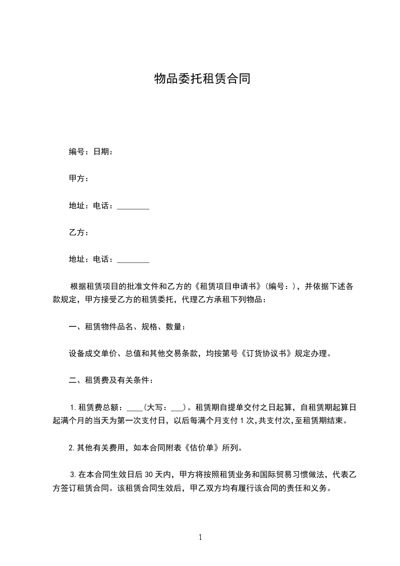 甲方:______________乙方:_______________甲、乙双方本着精诚合作、平等互利的原则,经友好协商,就相关租赁合作事宜,达成如下,双方共同遵守: