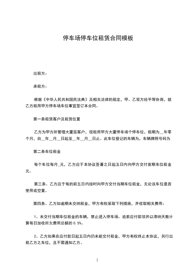 第五条:租赁期满时,甲方有权收回租赁车位,但乙方有优先续租权。如乙方有意续租,需提前一个月通知甲方,经双方协商重新签订续租合同。