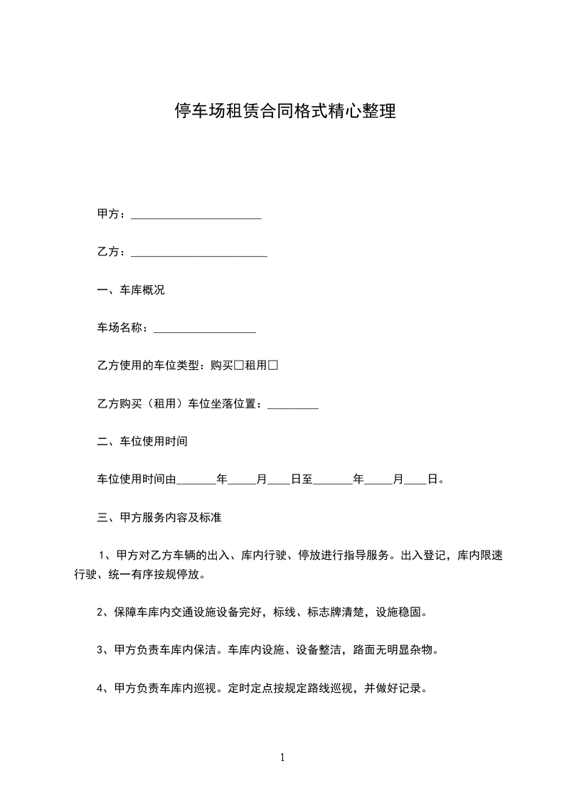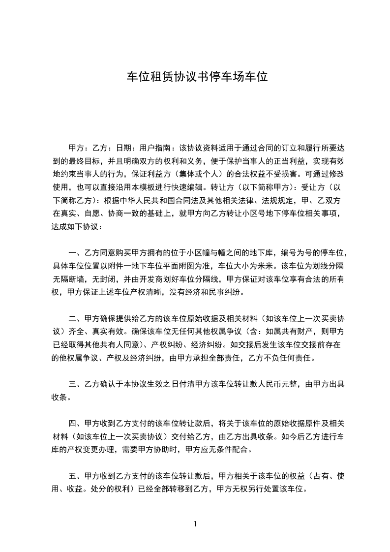 第三条:租金的计算和支付此停车位租金是每月___________元人民币的物业管理费,共计人民币___________元。于签订本合同同时一次性付清。停车位物业管理费由甲方承担。