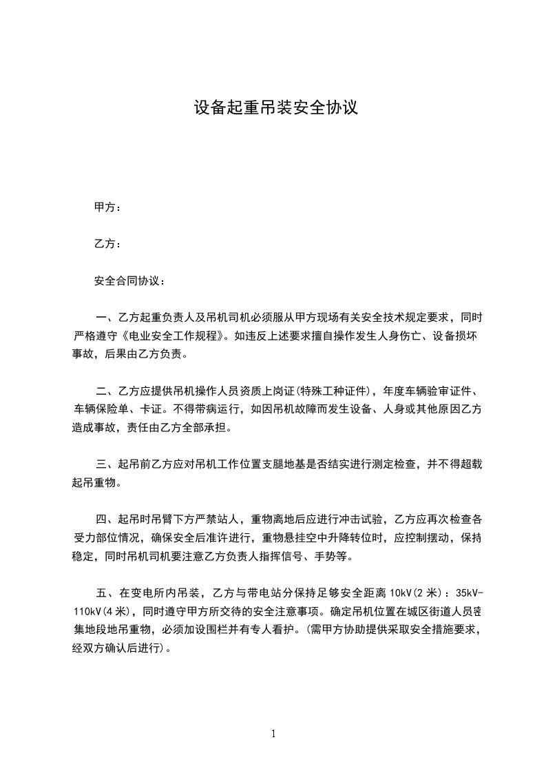 一、乙方起重负责人及吊机司机必须服从甲方现场有关安全技术规定要求,同时严格遵守《电业安全工作规程》。如违反上述要求擅自操作发生人身伤亡、设备损坏事故,后果由乙方负责。