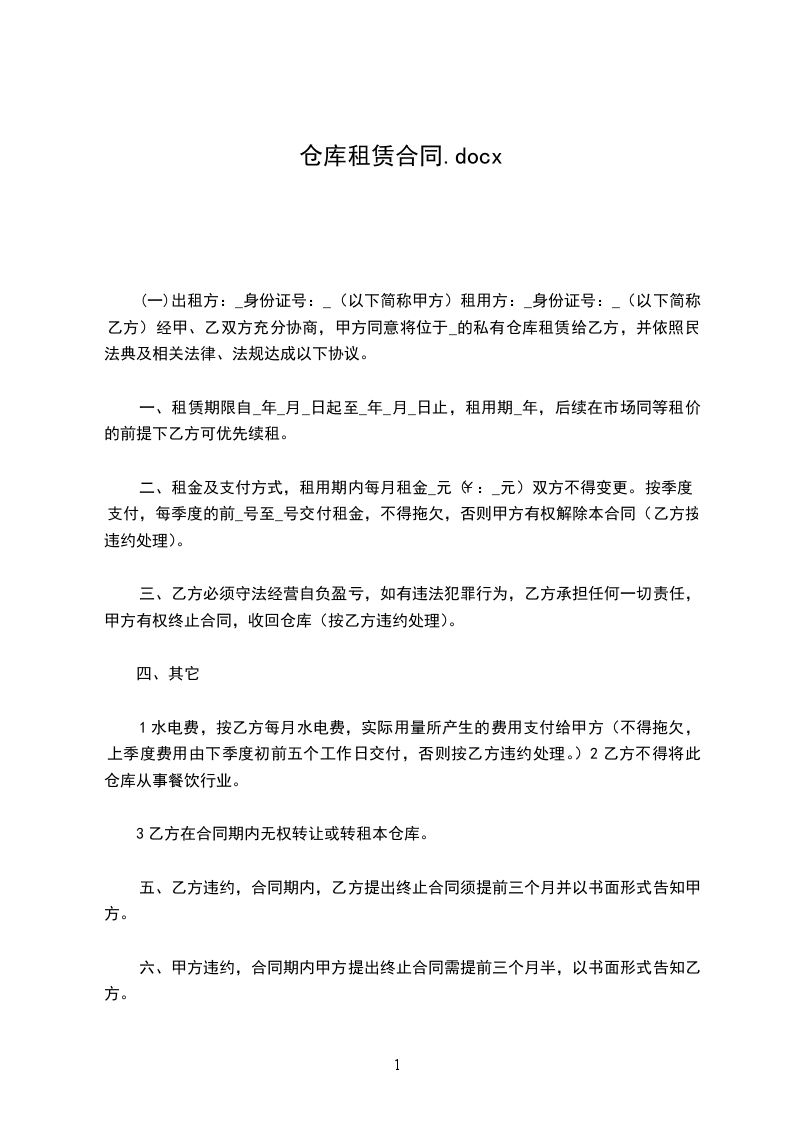 3.租赁仓库仅供乙方作存储类物品之用。