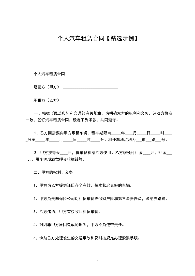 四、租用期定为一年,自_________年_________月_________日起至_________年_________月_________日止,承租方如果继续使用或停用应在5日前向出租方提出协商,否则按合同规定照收租费或按合同期限将车调回。