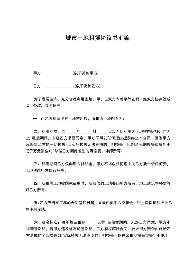 4、如果因国家其他不可抗力,导致合同不能履行或合同目的不能实现的,双方均可解除合同,并且不承担违约责任。若因国家政策调整或征收该地建设开发,土地征地款属甲方所有,乙方享受地面附着物赔偿费及青苗补偿费。