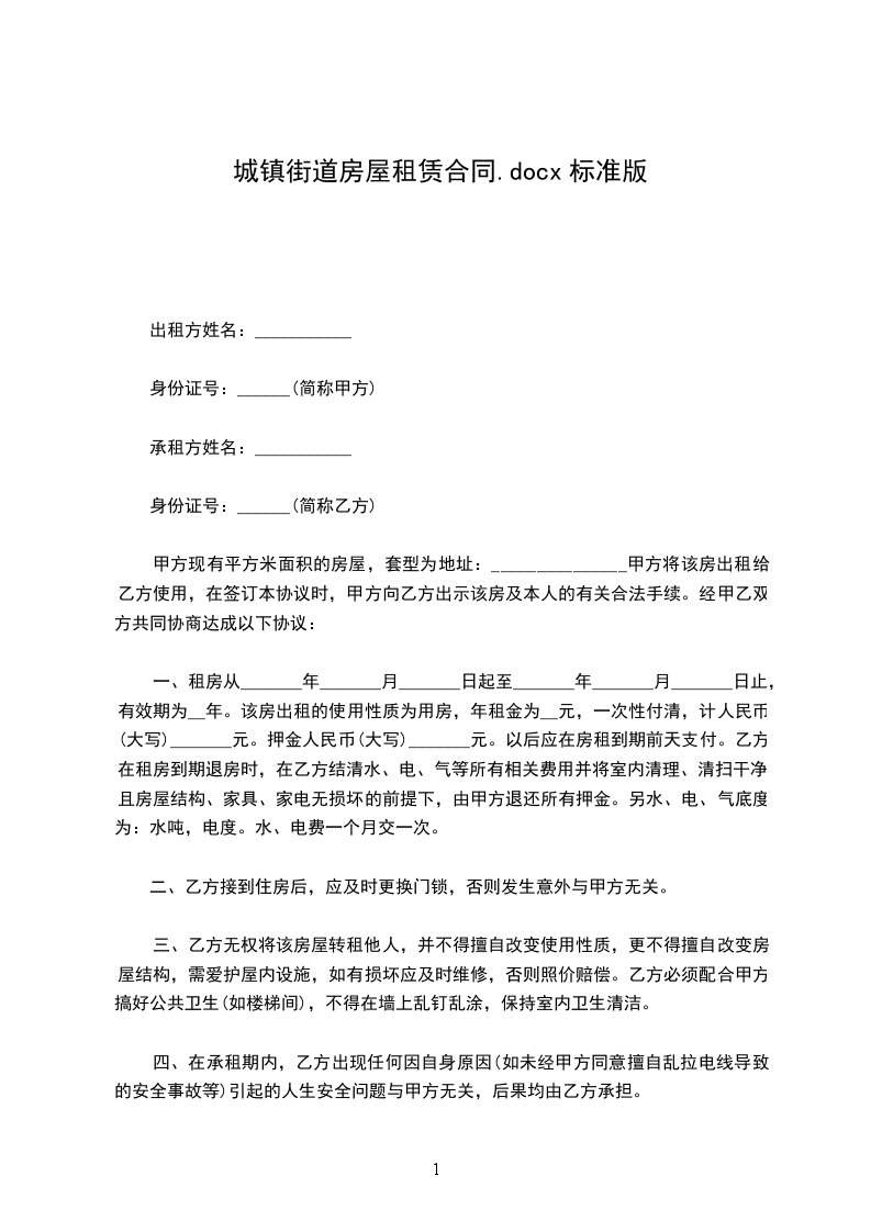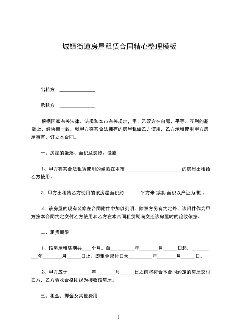甲方现有平方米面积的房屋,套型为地址:_______________甲方将该房出租给乙方使用,在签订本协议时,甲方向乙方出示该房及本人的有关合法手续。经甲乙双方共同协商达成以下协议: