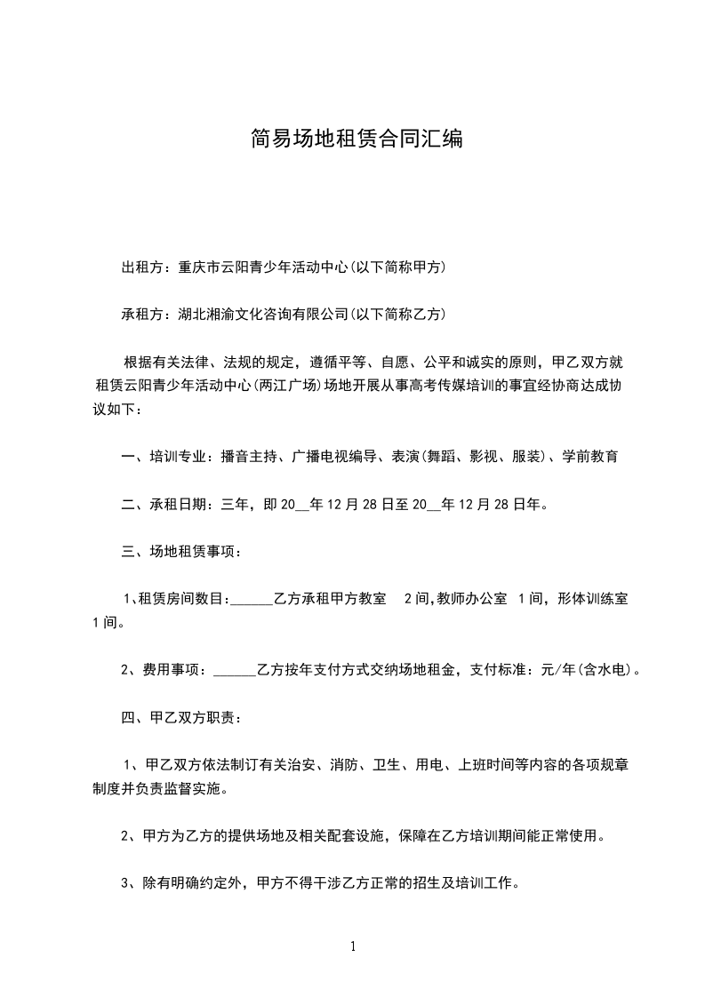 根据有关法律、法规的规定,遵循平等、自愿、公平和诚实的原则,甲乙双方就租赁云阳青少年活动中心(两江广场)场地开展从事高考传媒培训的事宜经协商达成协议如下: