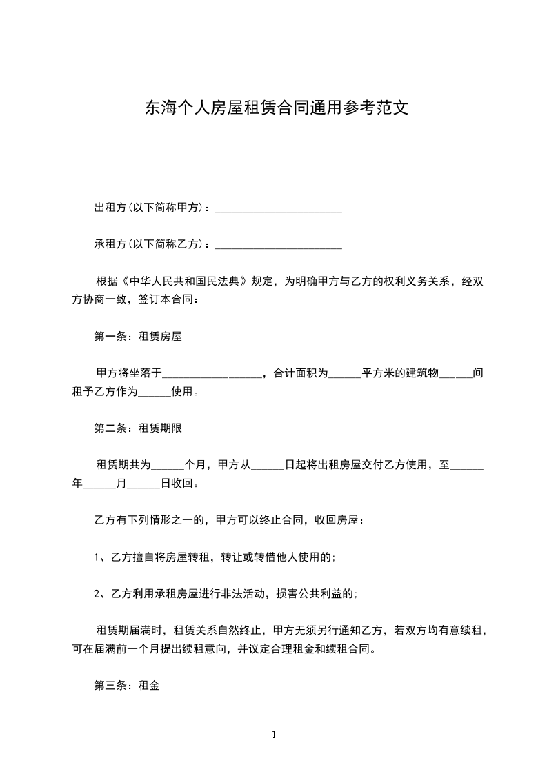 第一条:租赁房屋