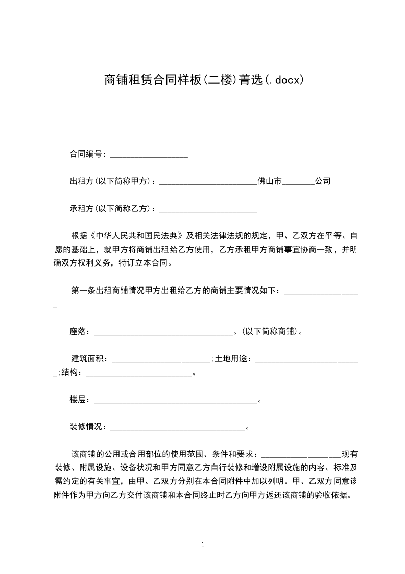 第一条出租商铺情况甲方出租给乙方的商铺主要情况如下:___________________