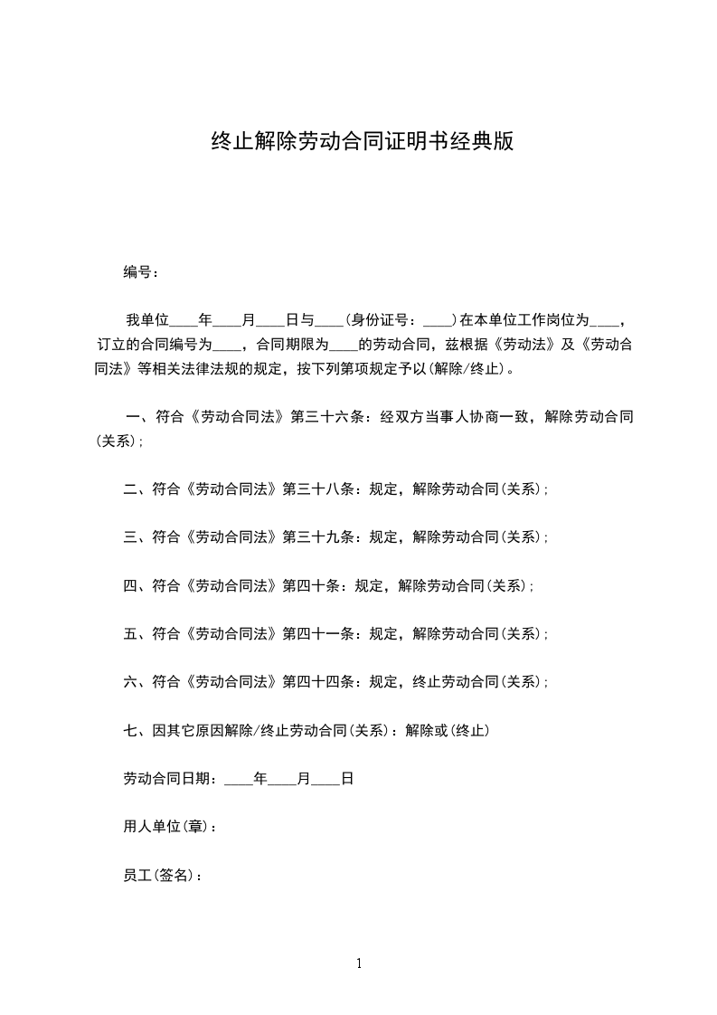1.双方协商一致自20____年____月____日起双方解除劳动关系。