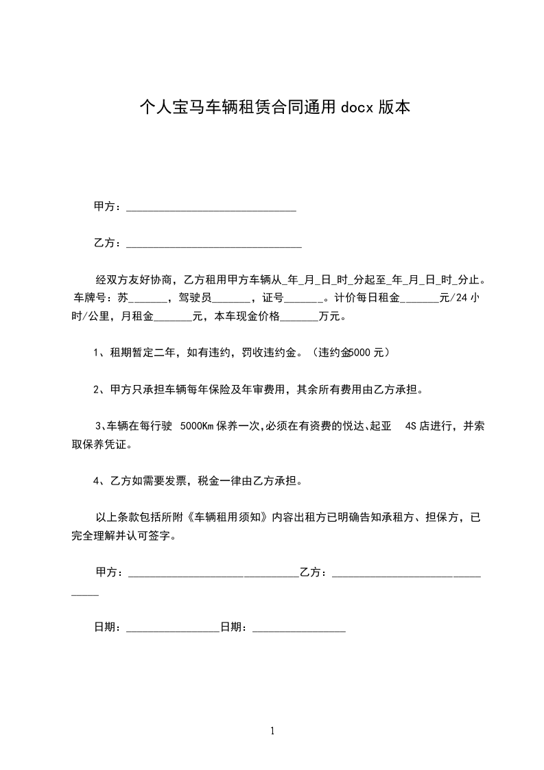 经双方友好协商,乙方租用甲方车辆从_年_月_日_时_分起至_年_月_日_时_分止。车牌号:苏_______,驾驶员_______,证号_______。计价每日租金_______元/24小时/公里,月租金_______元,本车现金价格_______万元。