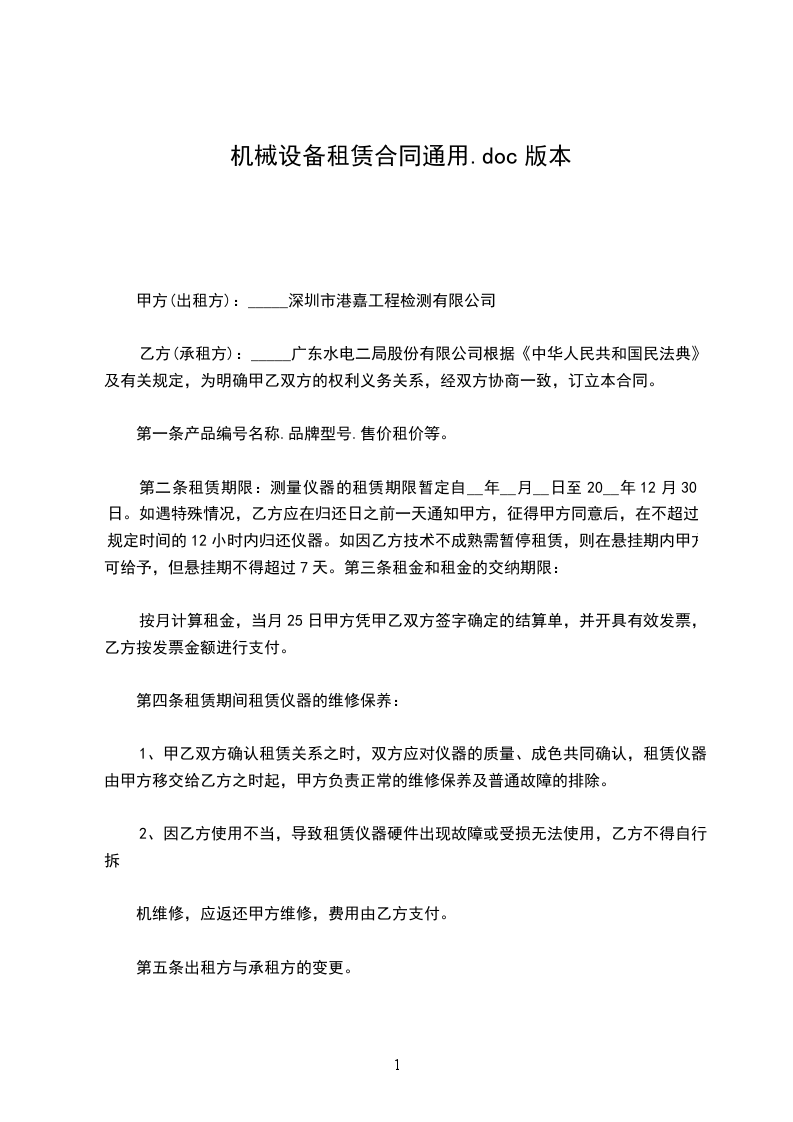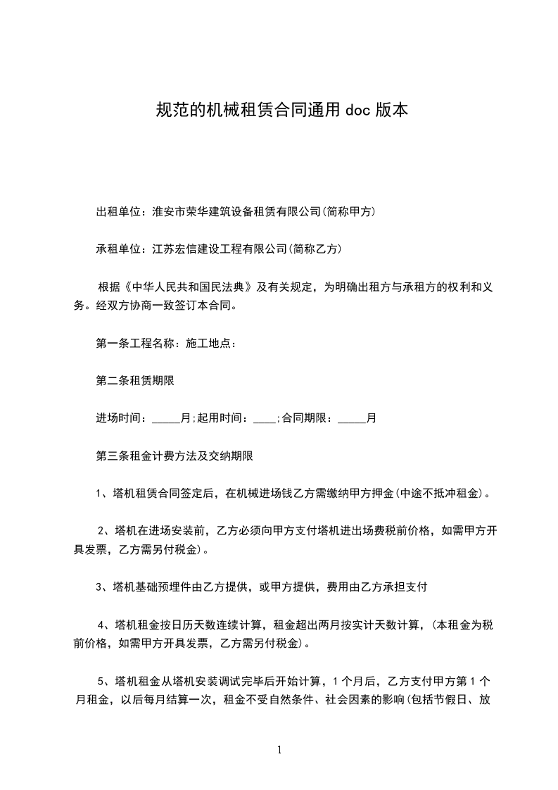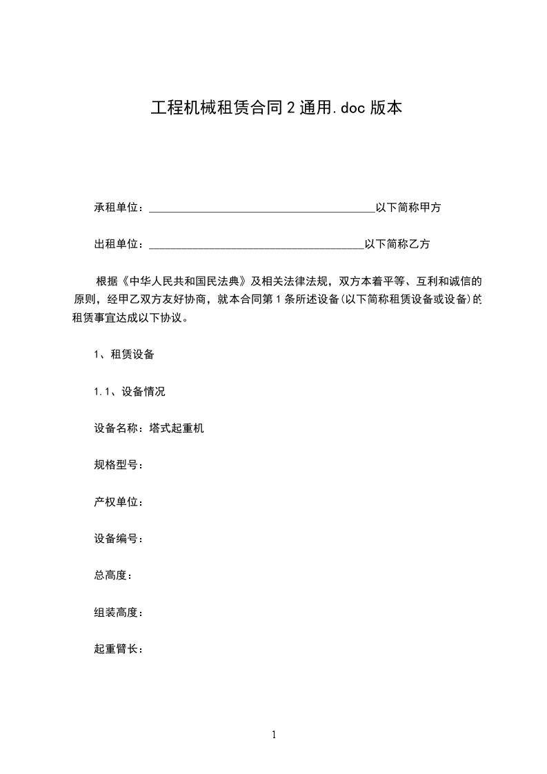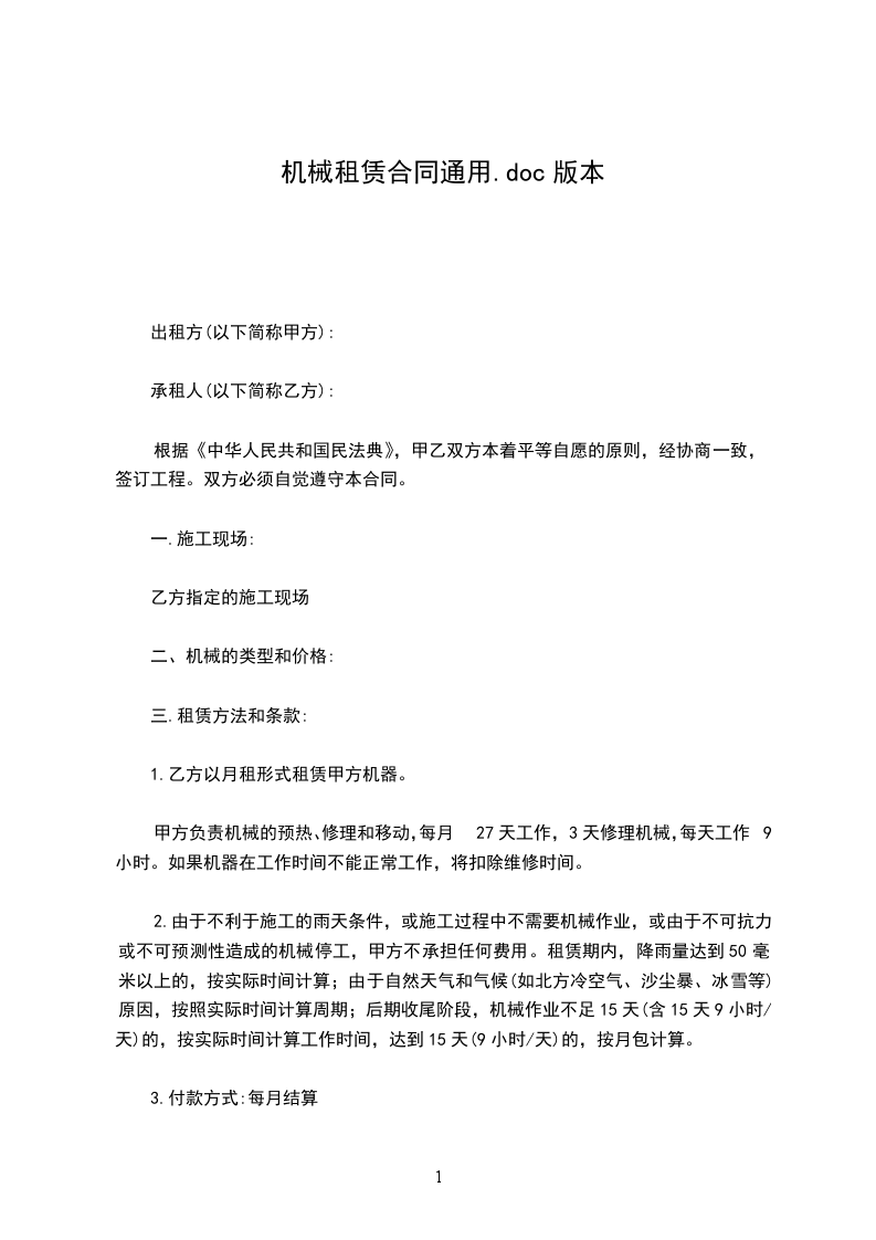 依据《中华人民共和国民法典》及有关法律法规,为明确出租方与承租方的权利和义务,遵循平等、自愿、公平和诚信的原则,双方就____机租赁事宜协商一致,订立本合同。