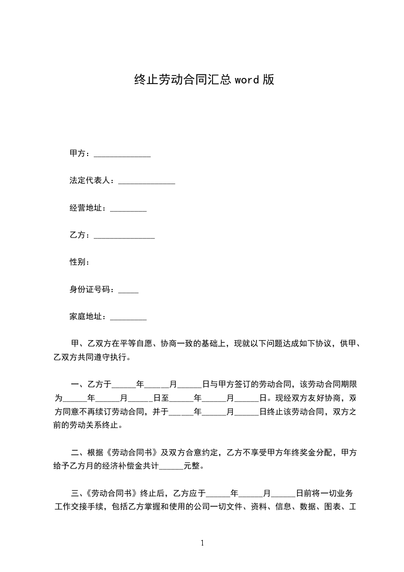 三、本协议书一式二份甲、乙双方各执一份终止劳动合同协议书
