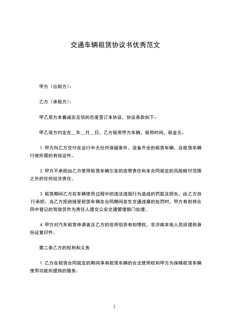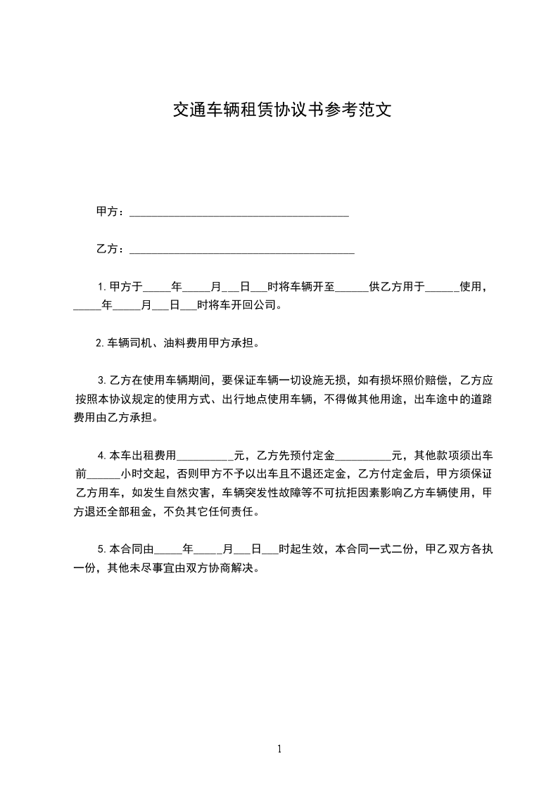 四、租用期定为一年,自_年__月__日起至_年__月__日止,承租方如果继续使用或停用应在__日前向出租方提出协商,否则按合同规定照收租费或按合同期限将车调回。