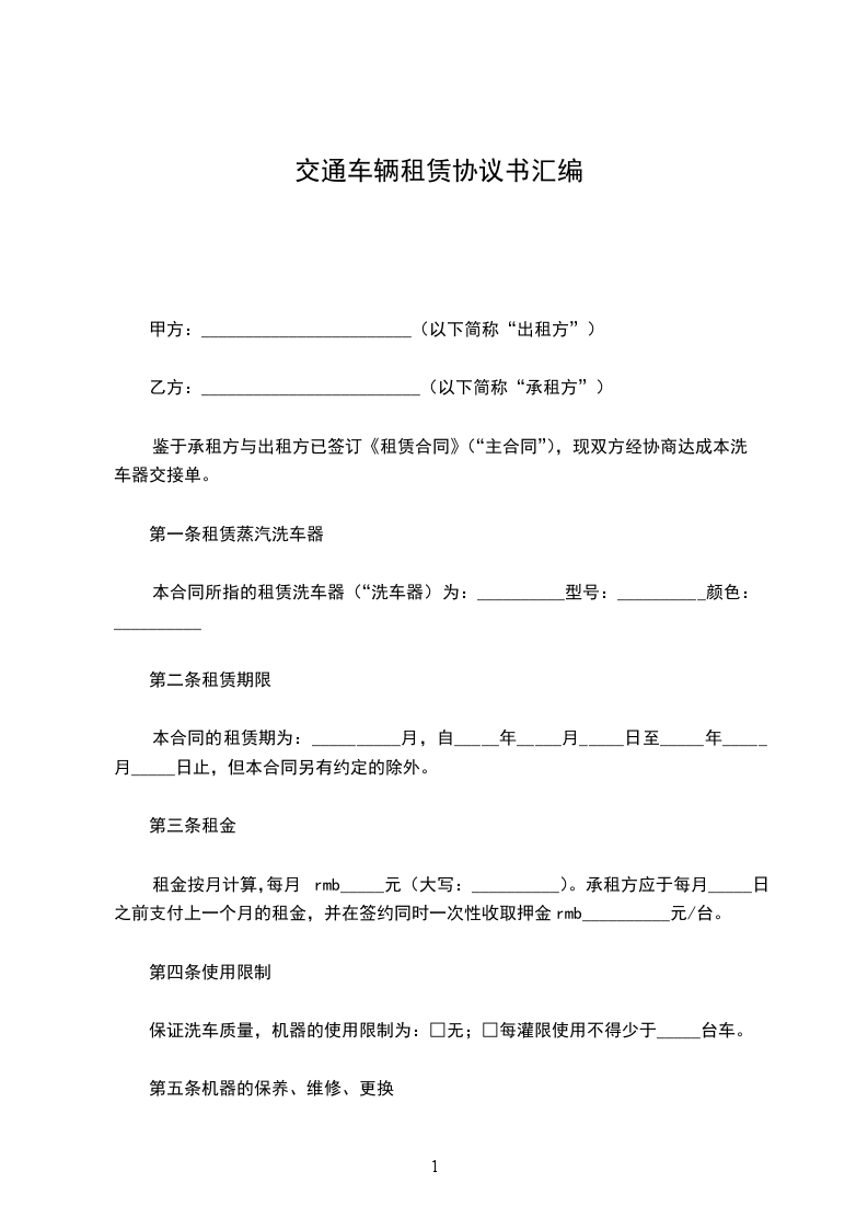 三、承租方要负责对所租车辆进行维护保养,在退租时如给车辆设备造成损坏,承租方应负责修复原状或赔偿,修复期照收租费。因出租方所派司机驾驶不当造成损坏的由出租方自负,如果致使承租方不能按合同规定正常使用租赁车辆,承租方不但不给付出租方不能使用期间的租费,而且出租方每天还要偿付承租方元钱的违约金。