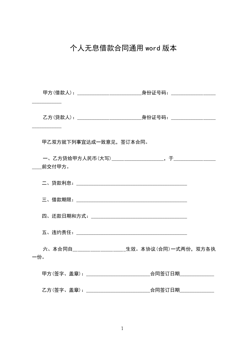 4、本借款乙方最迟于借款支付日起_______天内归还给甲方。