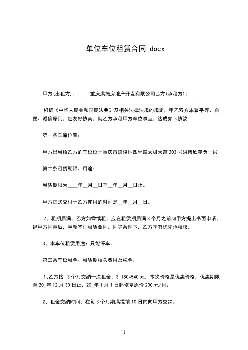 根据《中华人民共和国民法典》及相关法律法规的规定,甲乙双方本着平等、自愿、诚信原则,经友好协商,就乙方承租甲方车位事宜,达成如下协议: