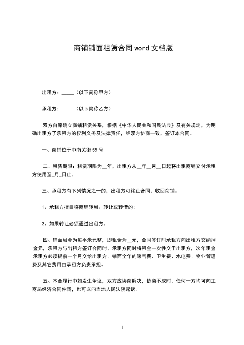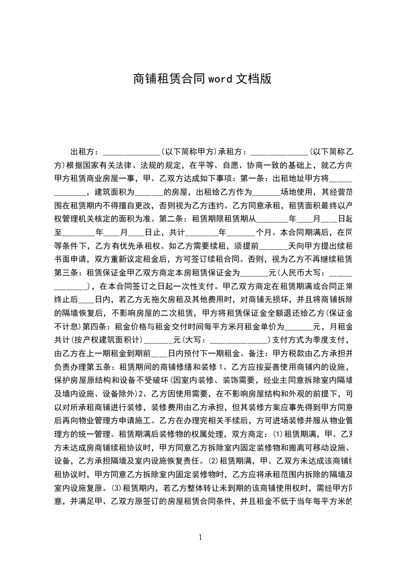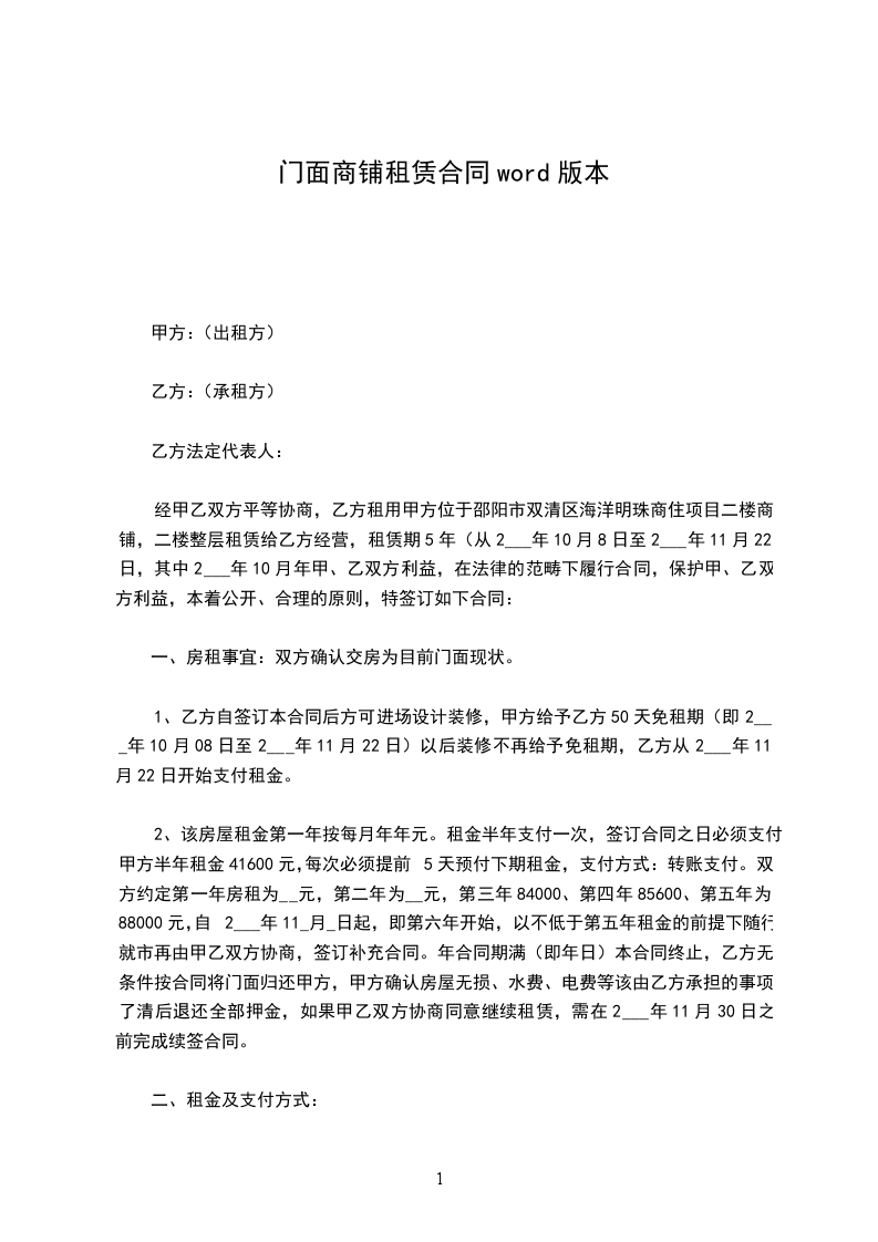 四、铺面租金为每平米元整,即租金为__元,合同签订时承租方向出租方交纳押金元,承租方与出租方签订合同时,承租方同时将租金一次性交于出租方,次年租金承租方必须提前一个月交给出租方。铺面全年的暖气费、卫生费、水电费、物业管理费及其它费用由承租方负责承担。