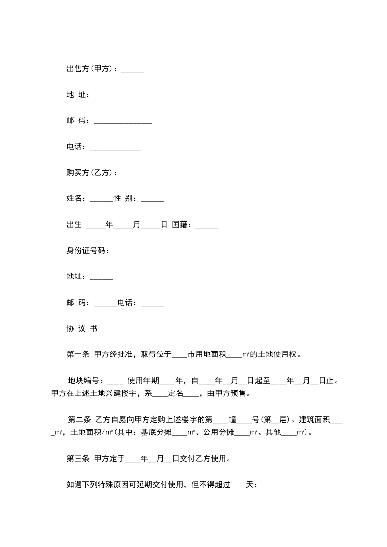 1、买受人同意:买受人所购房屋建筑区划范围内,与底层房屋直接毗连的花园或露台使用权由出卖人统一分割,并授权相应的底层房屋买受人专有使用,非该相应底层房屋买受人自愿不可撤销的放弃对该部分绿地的共有使用权;