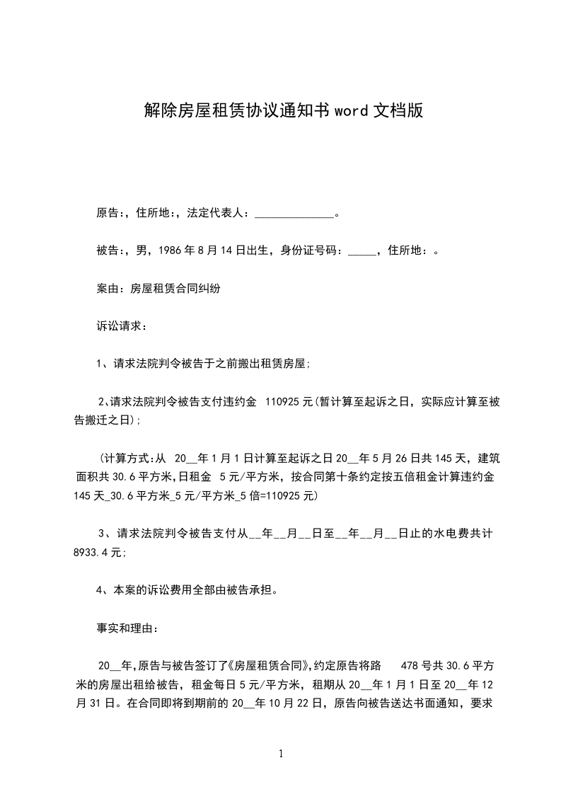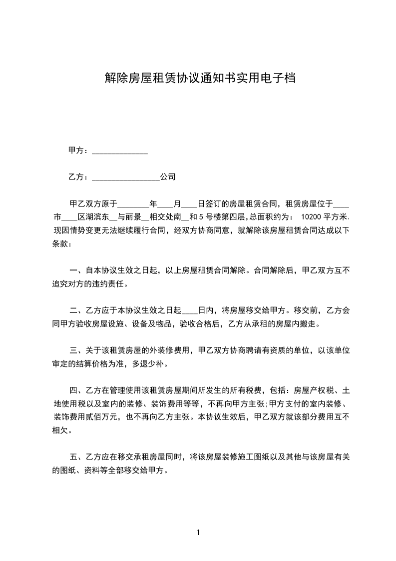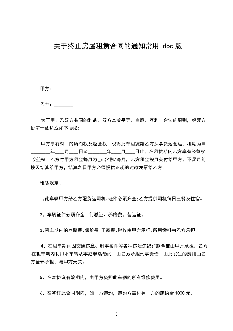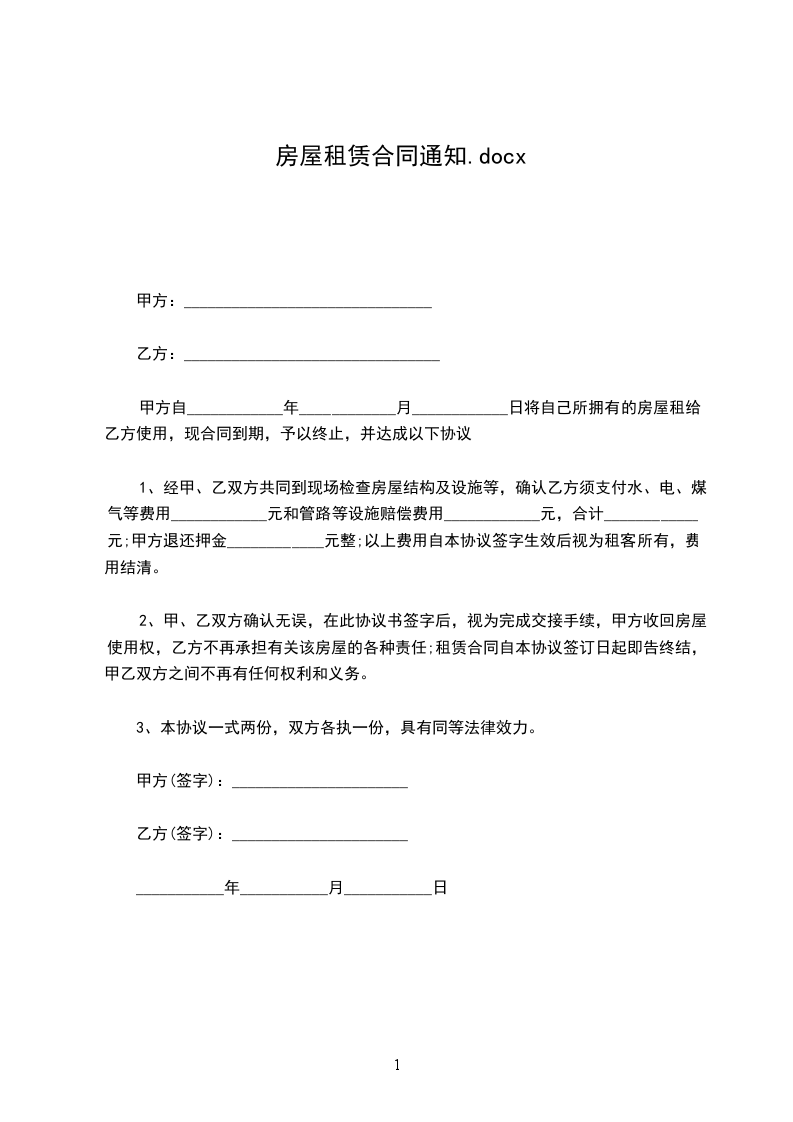 (三)租赁期内,甲方需提前收回该房屋的,应提前_________日通知乙方,将已收取的租金余额退还乙方并按月租金的_________%支付违约金。