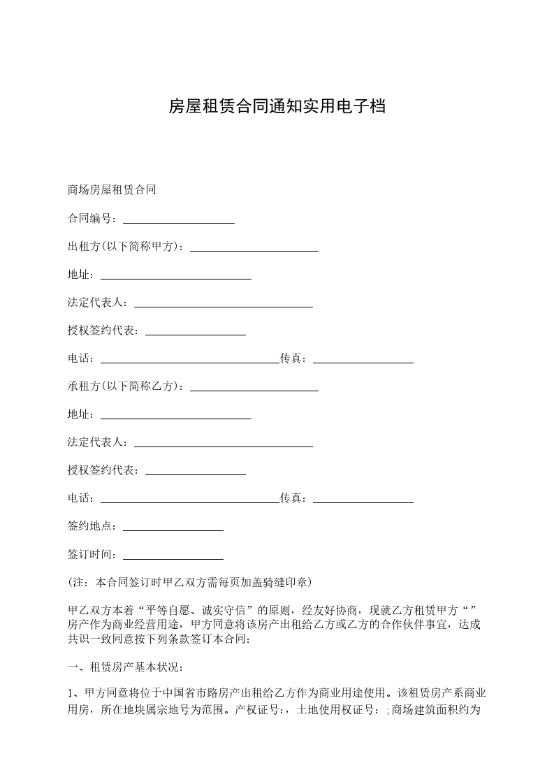 (一)房屋租赁期自_________年_________月_________日至_________年_________月_________日,共计_________年_________个月。(期限超过__年的,超过部分无效。)
