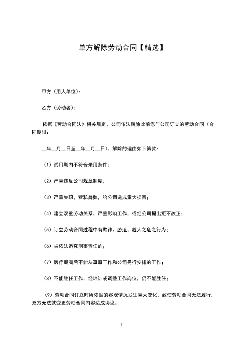__年__月__日至__年__月__日)。解除的理由如下第款: