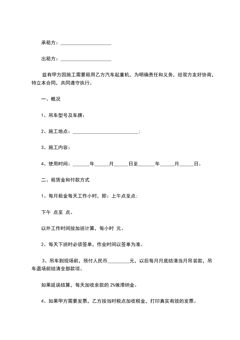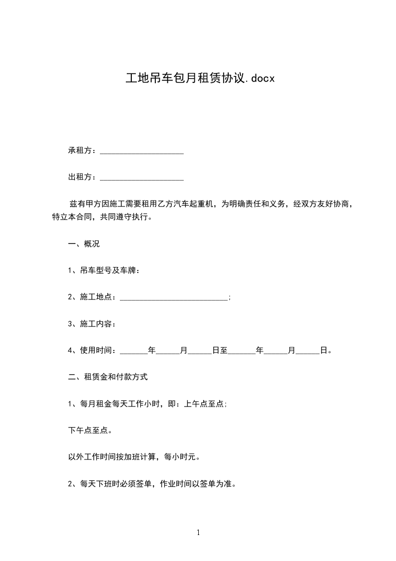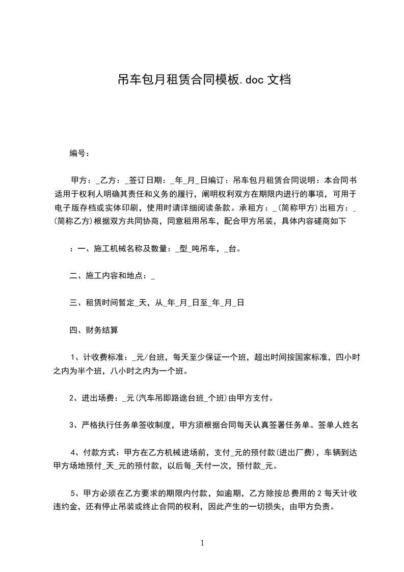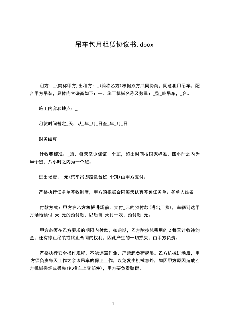 租用吊车为包月制,租金按月计费____元/月(含税金)。不足一个月的按实际产生的天数/30天乘60000元计算。包月最低期限为一个月。