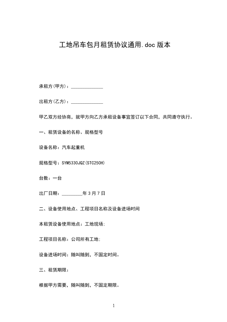 2、设备租赁时间自设备进场正式使用起计算。