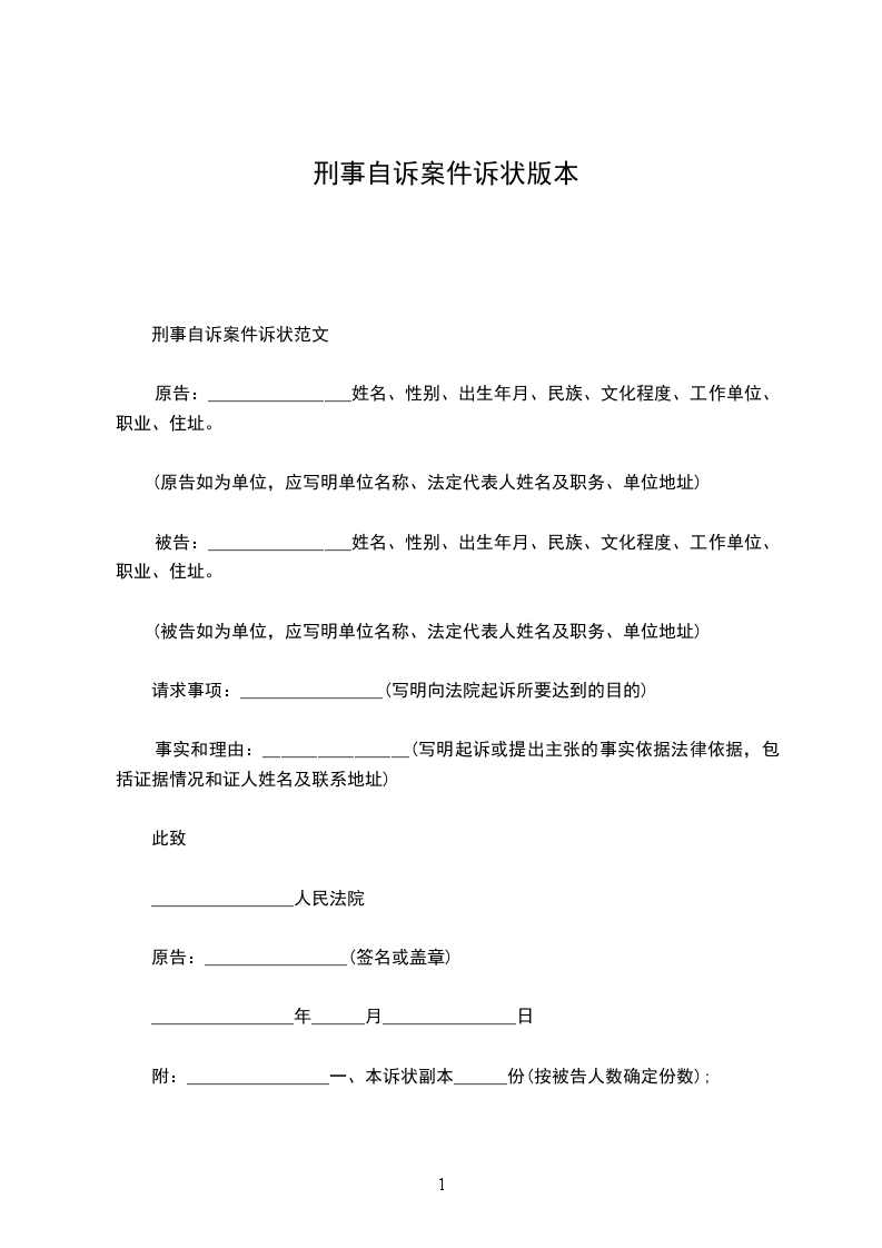 自诉人:姓名、性别、出生______年____月____日、民族、籍贯、职业、工作单位和职务、住址等