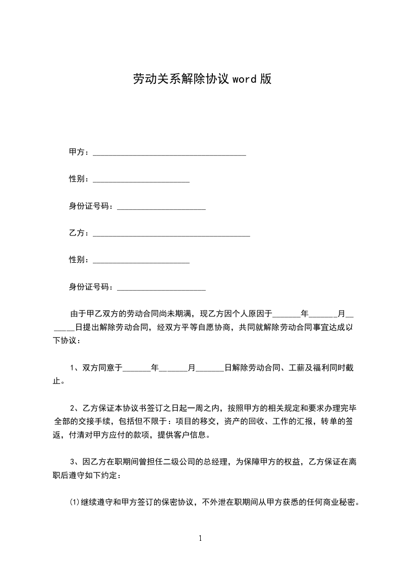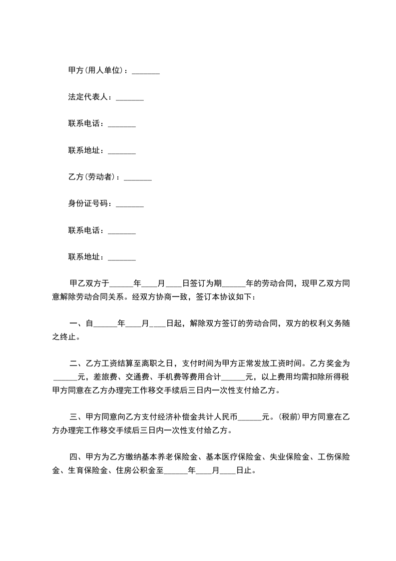 三、本协议书一式_____份甲、乙双方各执一份终止劳动合同协议书