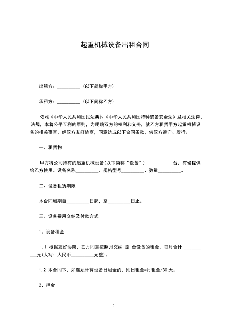 根据《中华人民共和国民法典》的有关规定甲乙双方本着互惠、互利、协商、自愿的原则,就乙方租赁甲方的_________(以下统称为设备)一事,签订如下租赁合同,双方要严格执行:_______。