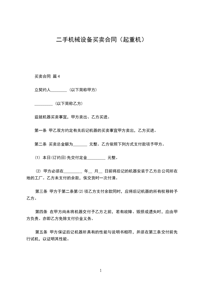 4、设备运输前,乙方应交付甲方设备保证金方资金紧时,经双方协商同意,塔吊使用45天后,乙方付租金并且在提前支付半个月的租金。