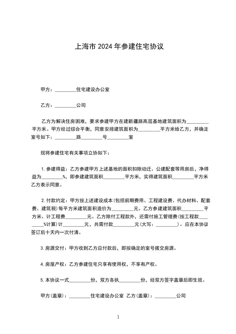 1.参建得益:乙方参建甲方上述基地的面积扣除动迁、公建配套等用房后,净得益为_________%,即参建建筑面积_________平方米,实得建筑面积_________平方米,乙方表示同意。