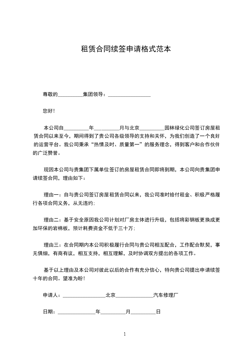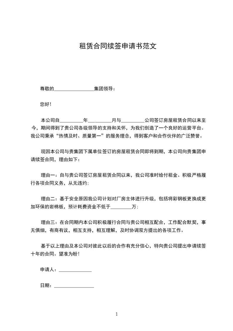 现因本公司与贵集团下属单位签订的房屋租赁合同即将到期,本公司向贵集团申请续签合同,理由如下: