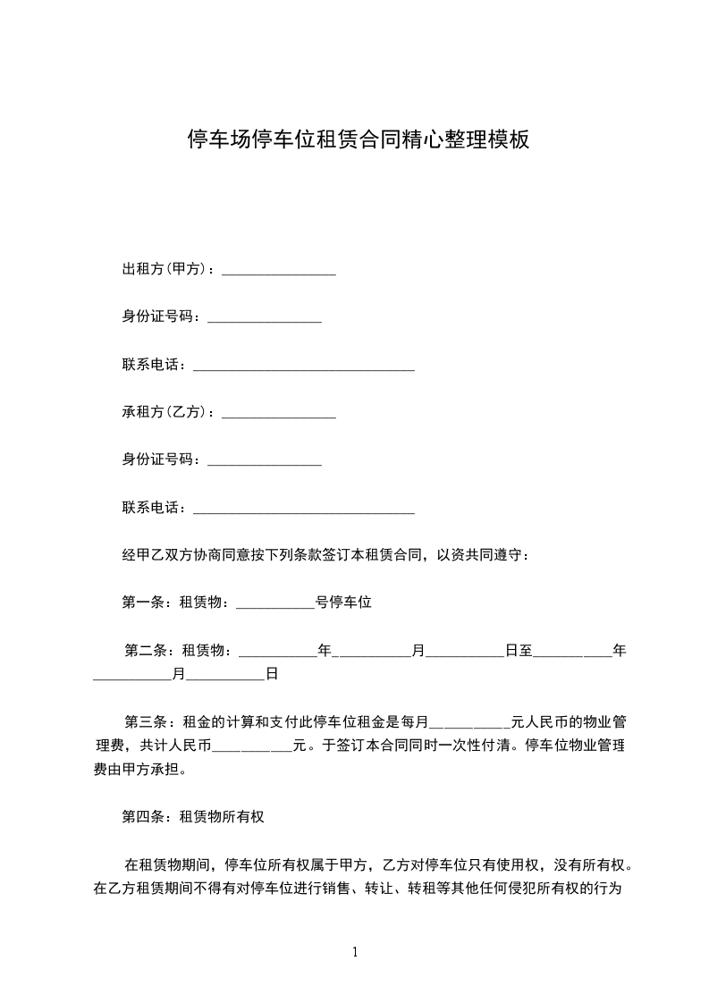 1、甲方对整个车库行使管理权。