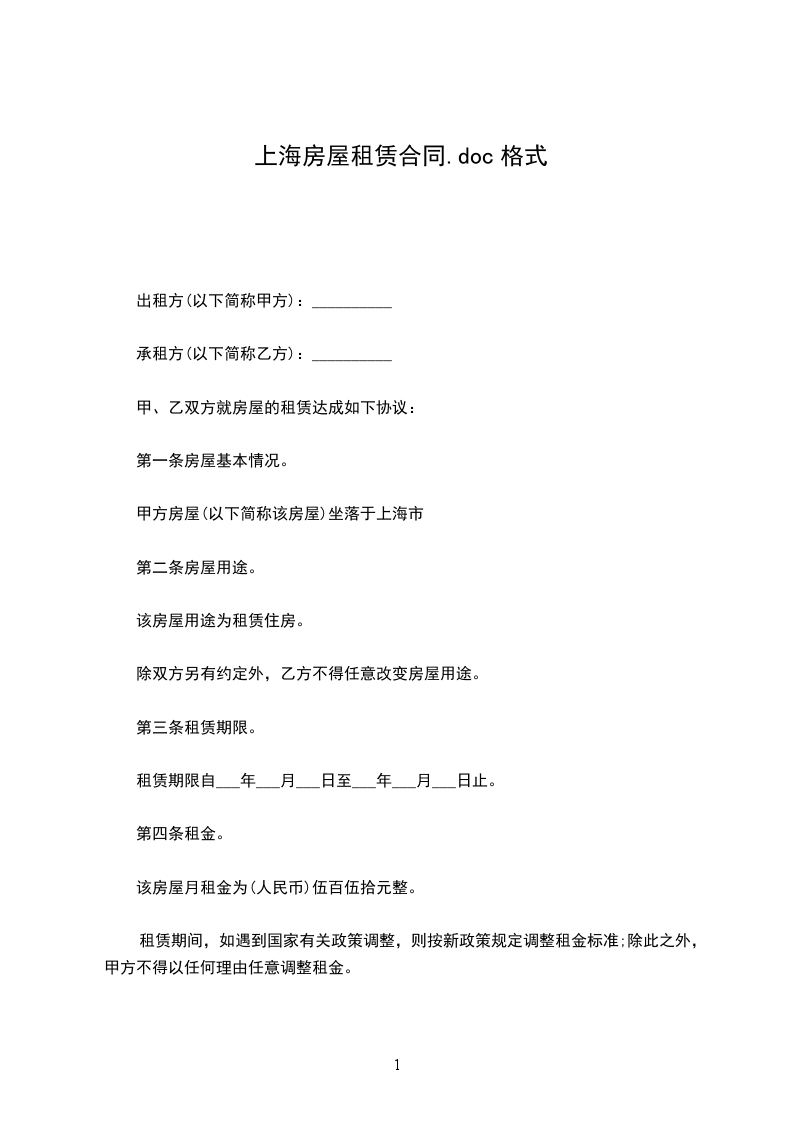 第六条.甲方向乙方收取个月租金数额的租赁房屋保证金,即人民币__元整,大写人民币__元