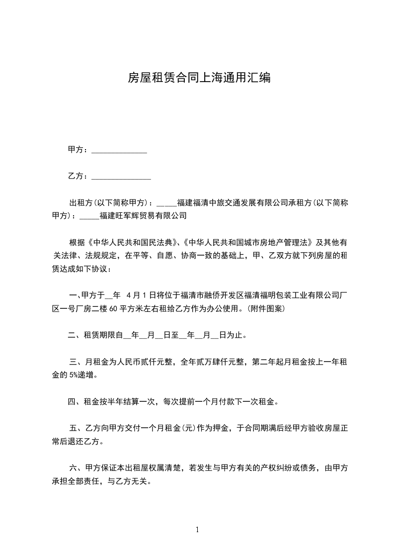 第一条.甲方将座落于南山区路房的房屋。建筑面积共平方米,出租给乙方使用。