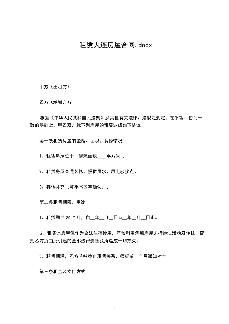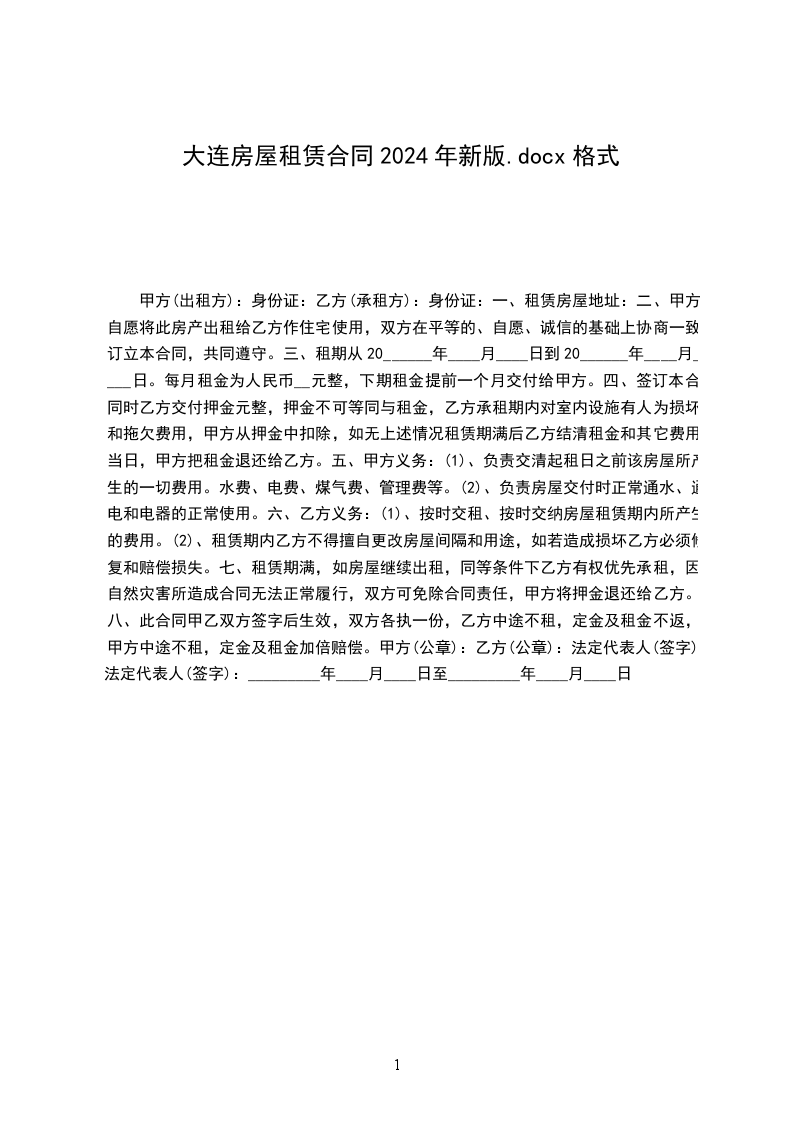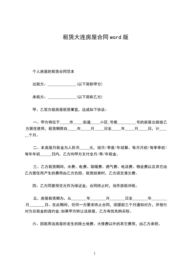 二:房屋座落:_________区_________楼_________单元_________号房屋使用面积:_________平方米甲方:_______________________乙方:________________________乙方承租甲方管理的上列房屋作为_________使用,双方议定遵守事项如下:
