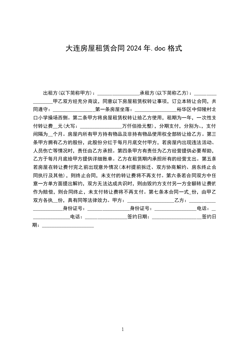 承租方(以下简称乙方):__________