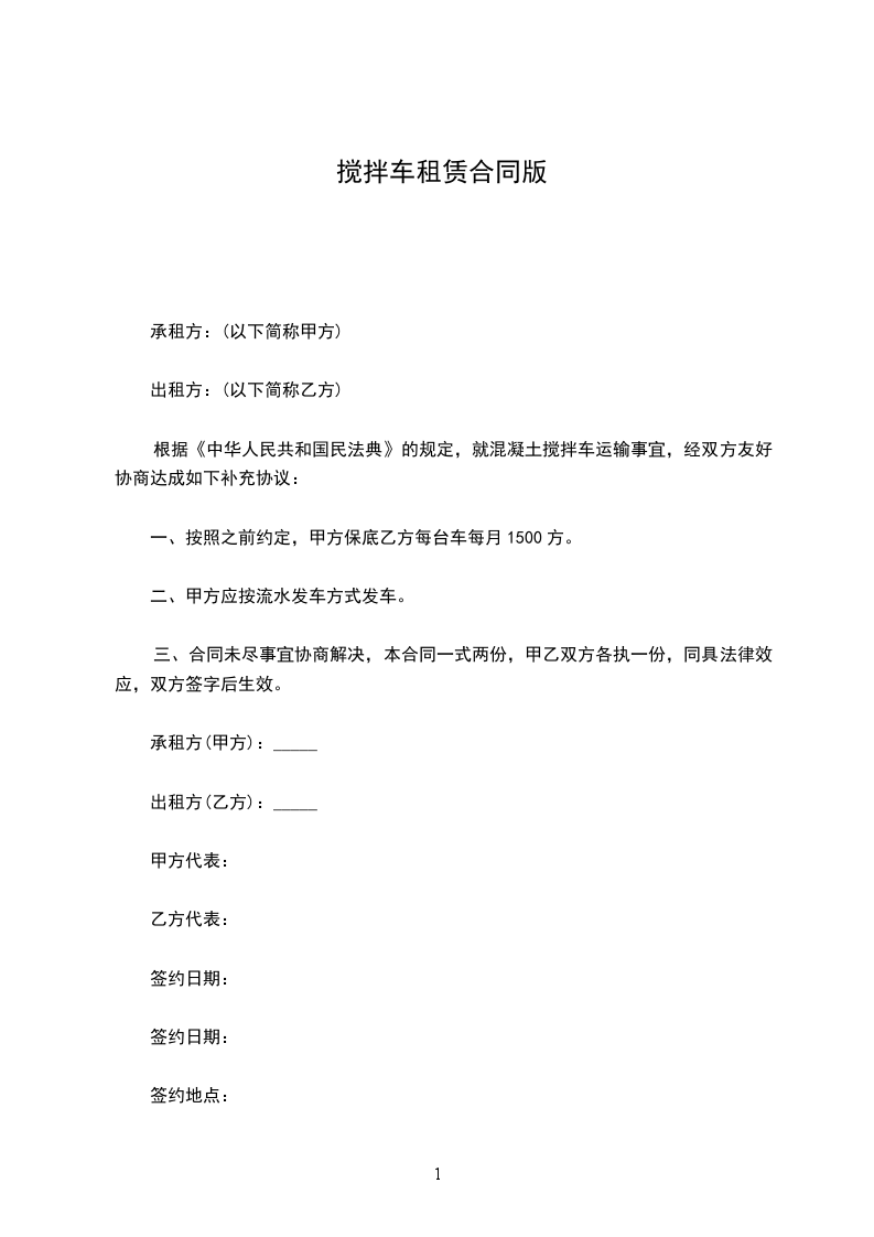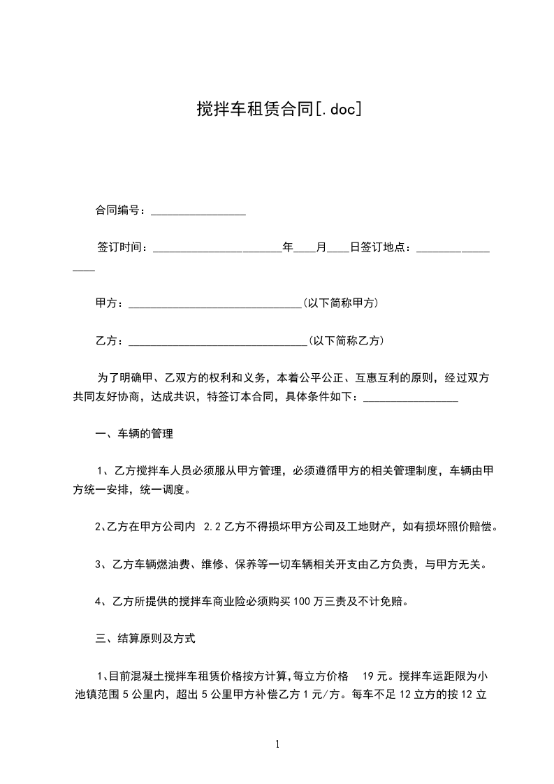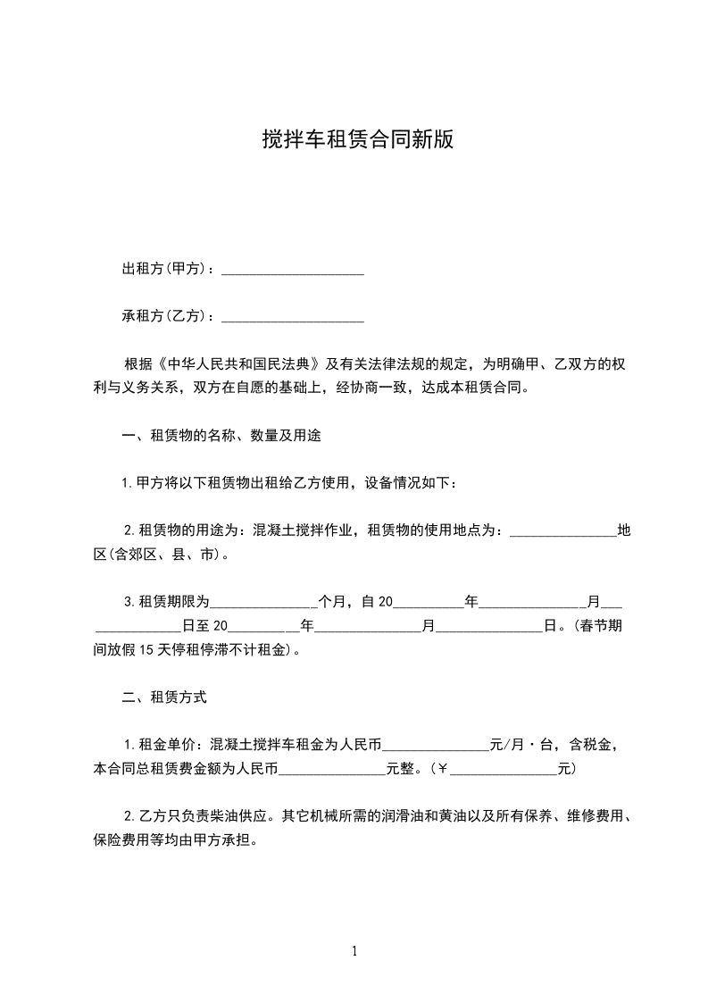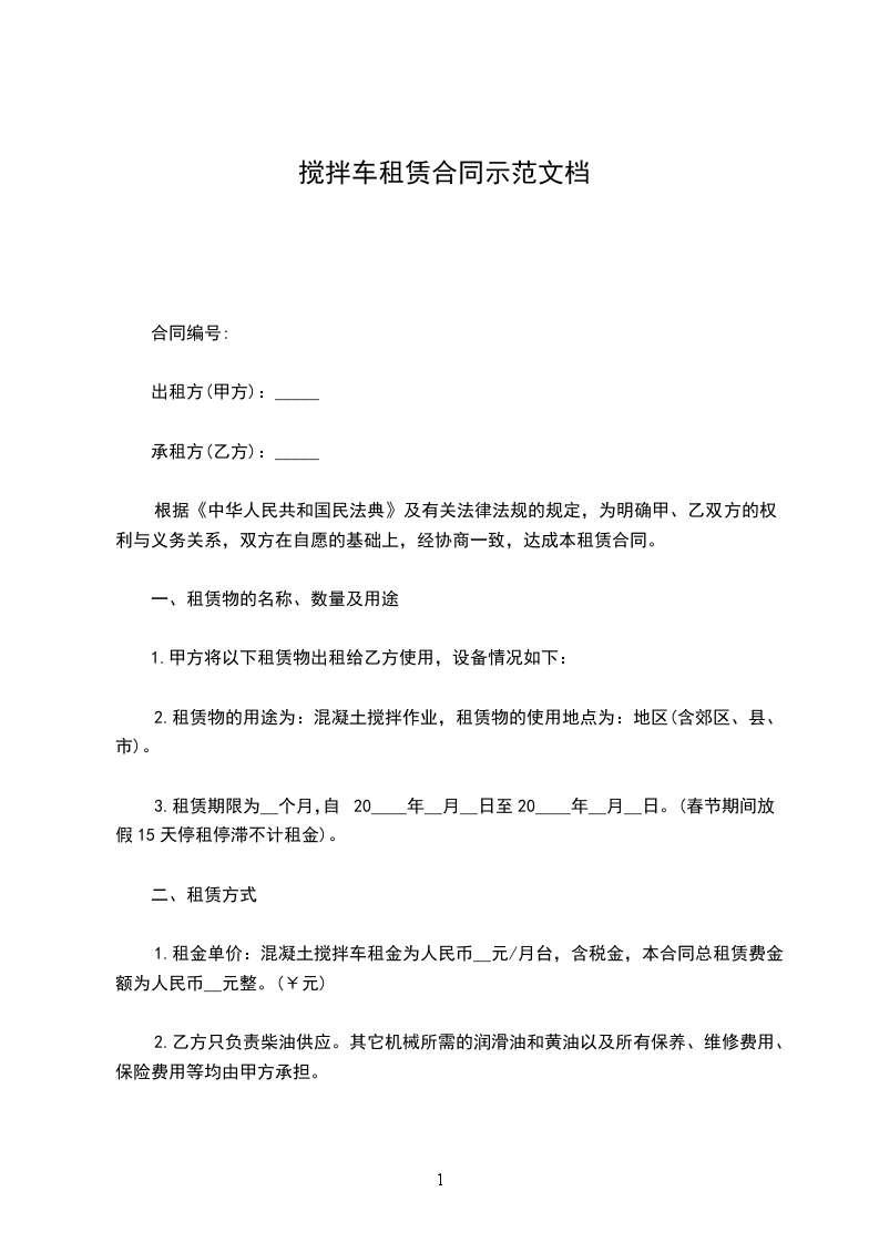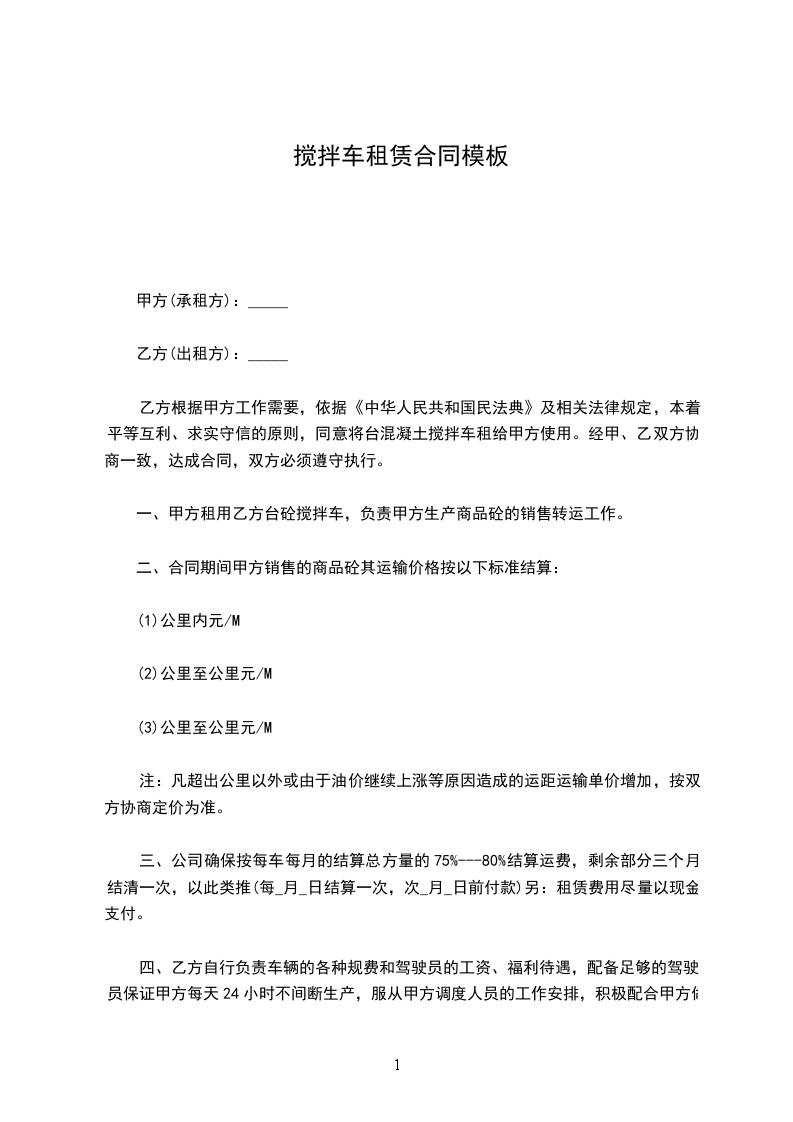 根据《中华人民共和国民法典》及有关法律法规之规定,甲乙双方就乙方租用甲方混凝土搅拌车运输混凝土一事,经双方友好协商,达成如下合同: