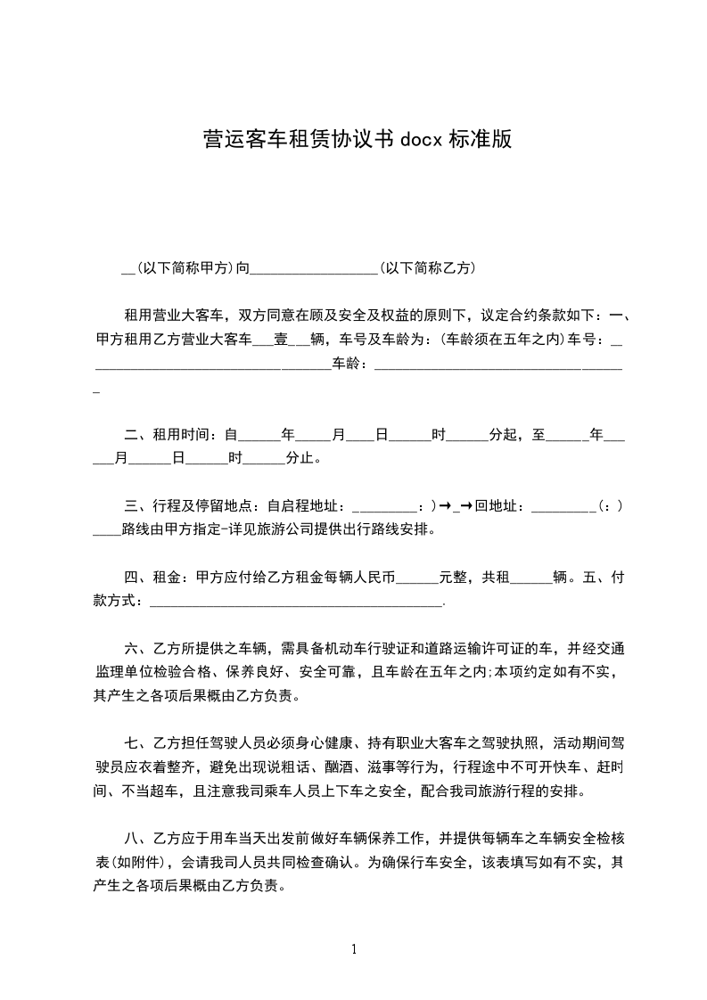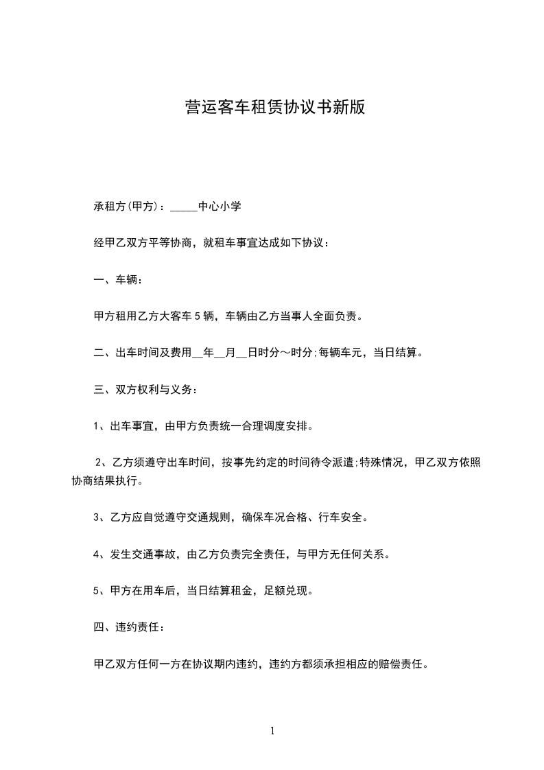 一、经甲乙双方协商,乙方愿租赁甲方的号出租车使用,租期为__月,自阳历二O__年__月__日起至二O__年__月__日。