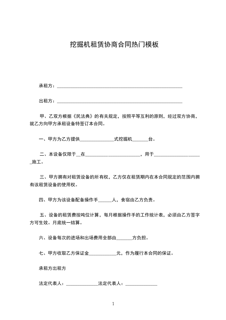 甲乙双方就甲方租用乙方挖掘机一事进行协商,并就租机的有关事谊达成以下协议,双方共同遵守。