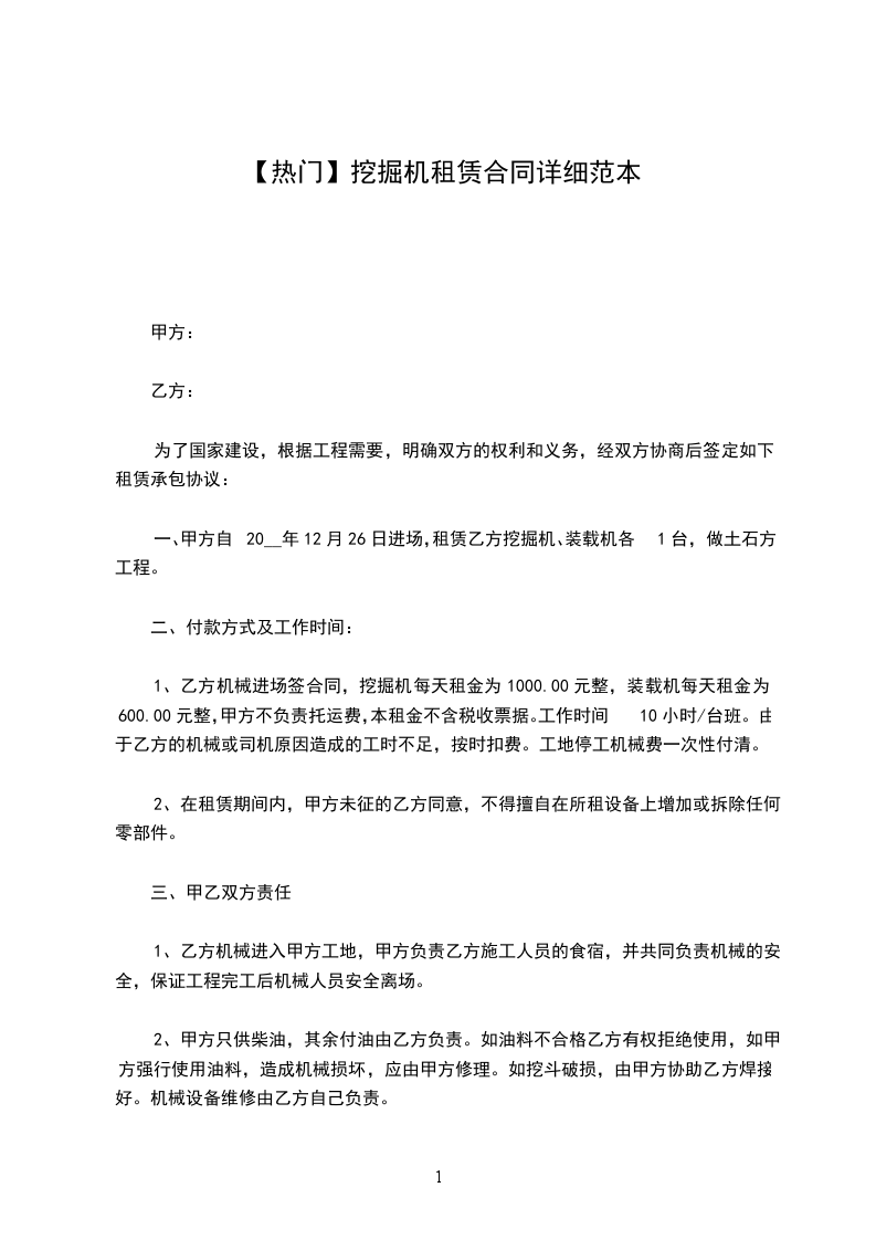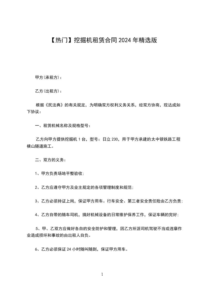 1、乙方的挖掘机每月实际作业量应达到58台班。凡乙原因造成当月实作1天数少于58台班时,每减少一台班则租金相应减少1893元。