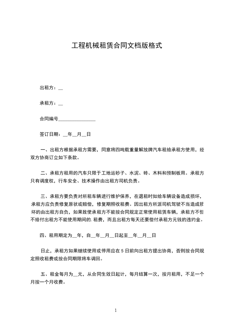 第一条租赁机械名称、及租金计算与支付