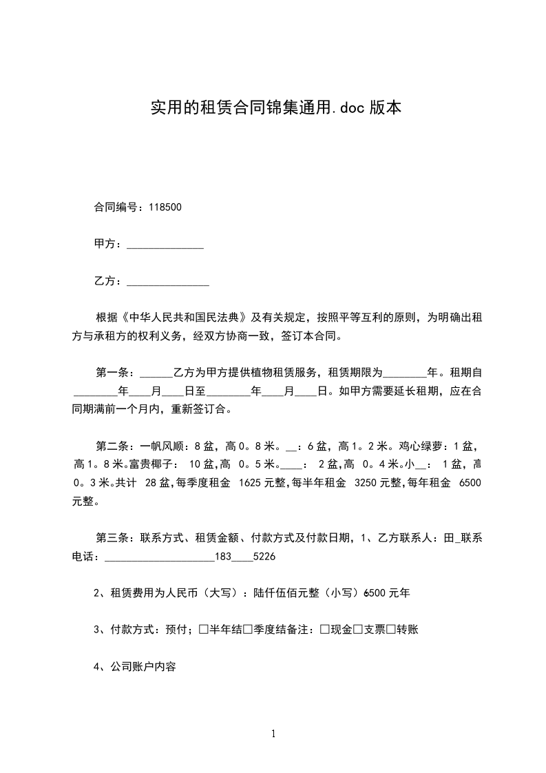 第一条:______乙方为甲方提供植物租赁服务,租赁期限为________年。租期自________年____月____日至________年____月____日。如甲方需要延长租期,应在合同期满前一个月内,重新签订合。