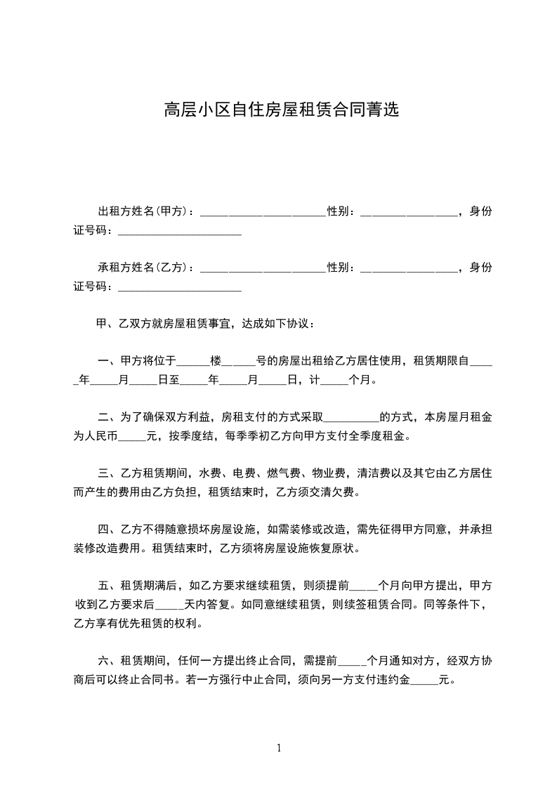 本合同条款均为提示性条款,供租赁双方当事人约定采用。合同中的未尽事宜,可由双方当事人协商一致后,订立补充条款予以明确。