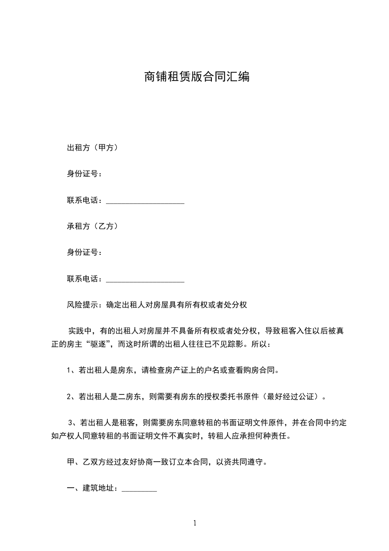 1.1甲方将其拥有合法所有权的位于_______的房屋出租给乙方作商业经营使用。