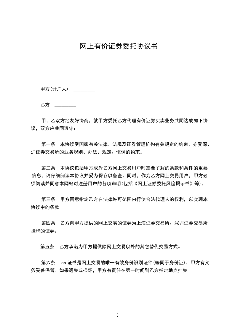 第十条 甲方必须是在乙方下属之合法营业部依法开户的投资人,方可选择在乙方柜台或乙方代理机构办理网上交易开户手续,进行网上交易。